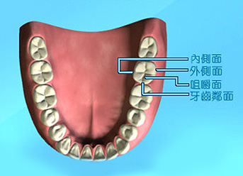 乳齒和恆齒的表面都可細分為外側面、內側面、咀嚼面及牙齒鄰面四類牙面。