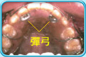 圖中所見是上頜和附在上頜的活動牙齒矯正器,並指出彈弓的所在位置。