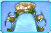 - 利用牙托底部伸延出來的金屬鈎,扣在旁邊的牙齒上,以固定假牙托。