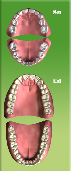人的一生有兩副牙齒,就是乳齒和恆齒。乳齒共有20顆,而恆齒共有32顆。