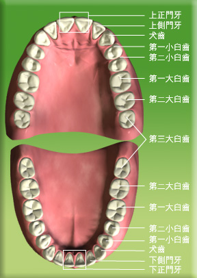 恆齒共有 32 顆,顏色比乳齒稍黃。