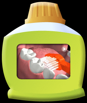 接著把牙刷放在牙齒的內側面,同樣以兩至三顆牙齒為一組,重覆來回清潔牙齒的動作