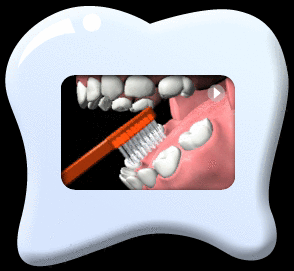 接著要刷牙齒的咀嚼面,把牙刷放在咀嚼面上前後刷動