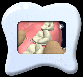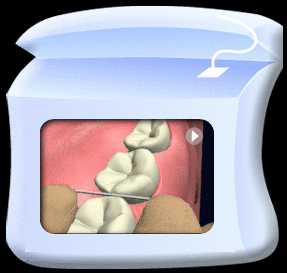 把牙線左右拉動,慢慢地把牙線滑進牙齒與牙齒之間的位置