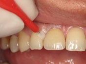 The cleaning method is similar to that of a real tooth. Brush at the gum margin, and use floss or interdental brush to clean the interdental surfaces.