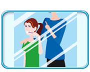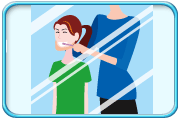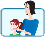 You may stand behind him/her, use one hand to wrap around his/her head, and gently support his/her chin to stabilize his/her head. Remember to do this only if he/she is willing, otherwise he/she will refuse to brush or floss his/her teeth.