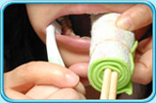 - Tongue protrusion during toothbrushing is a natural reflex. You may first ask him/her to calm down and start toothbrushing for him/her as soon as he/she relaxes his/her tongue. There is only a short period of time while he relaxes his/her tongue. Therefore you may need to precisely place the toothbrush inside his/her mouth and speed up the brushing process to make toothbrushing more pleasant for him/her. You may also consider using an electric toothbrush to shorten the time needed for brushing. However, you should use a correct brushing technique with care in order to avoid damaging his/her teeth and gum.