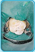Fissure sealant is a tooth-coloured or transparent material, which is well adhered to the enamel of the tooth. Fissure sealant seals off the fissures of a tooth to prevent tooth decay by blocking the plaque bacteria in the fissures from getting access to the dietary sugars.