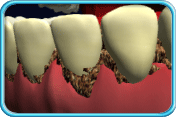 The toxins released by the bacteria in dental plaque which has accumulated along the gum margin for a period of time irritate the periodontal tissues (tooth supporting tissues) and lead to gum disease.
