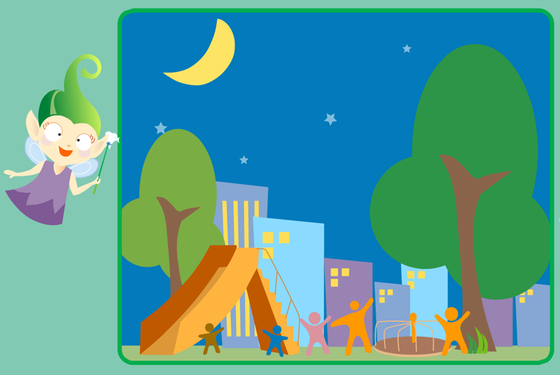 On a clear autumn night, parents took their children for a walk in the park after dinner.