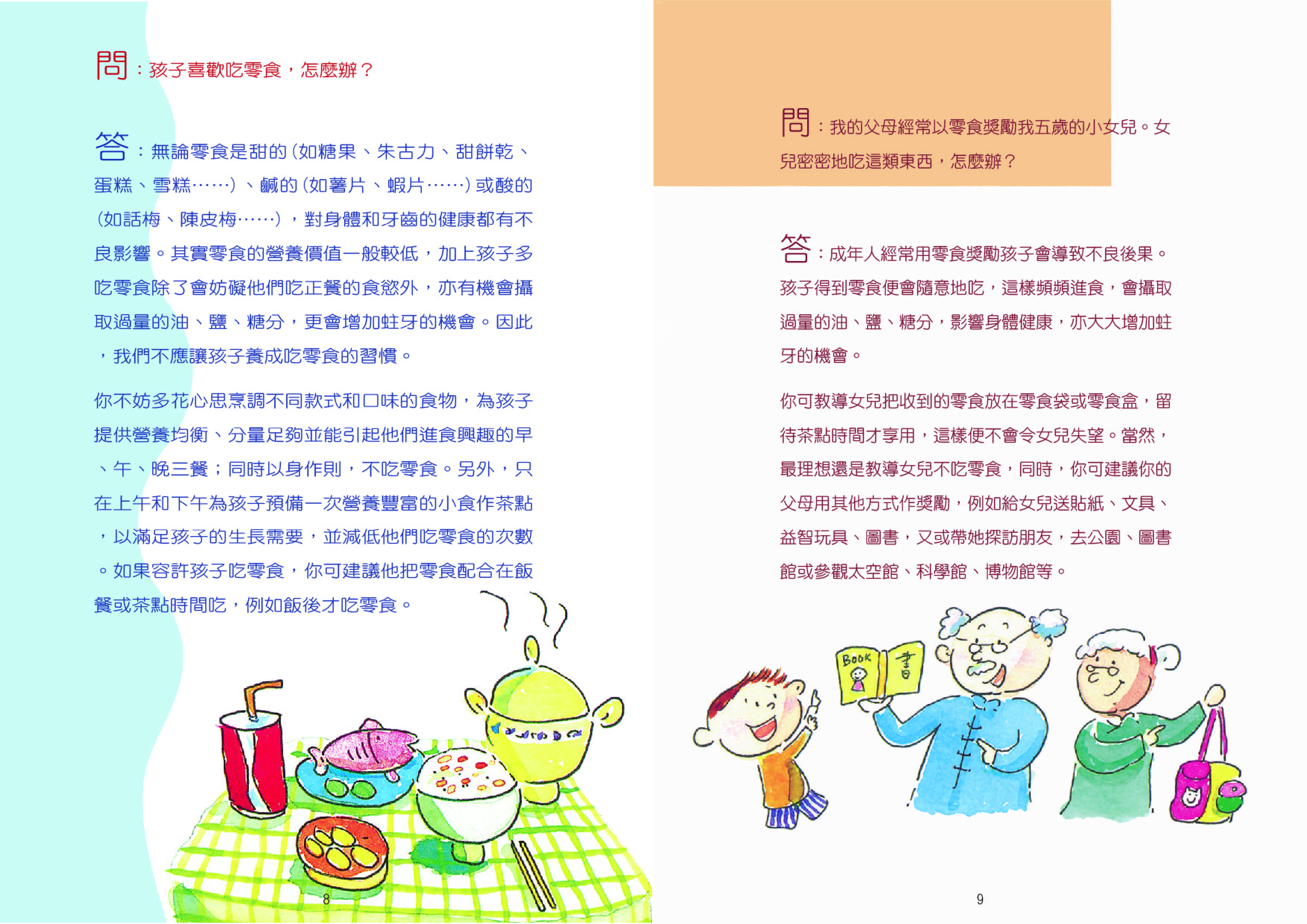 問:我的父母經常以零食獎勵我五歲的小女兒。女兒密密地吃這類東西,怎麼辦?
