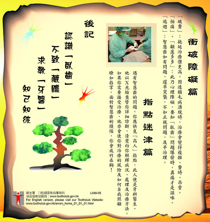 遇有智慧齒的問題,你應快覓「高人」指點,此人便是牙科醫生。他以X光檢查替你詳細診斷,清楚向你解釋病況、處理及治療方法。如果你需要接受治療,他亦會使你對治療的風險及如何自我照顧瞭如指掌。面對智慧齒的煩惱,你會成竹在胸!