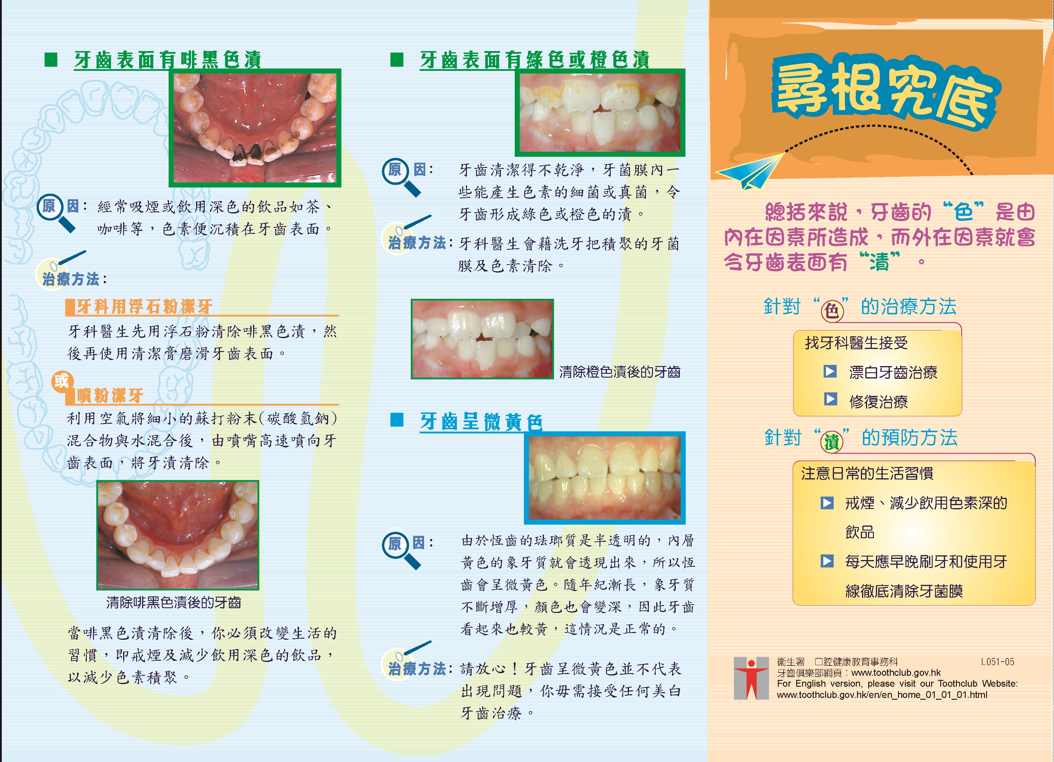 總括來說,牙齒的“色”是由內在因素所造成,而外在因素就會令牙齒表面有“漬”。