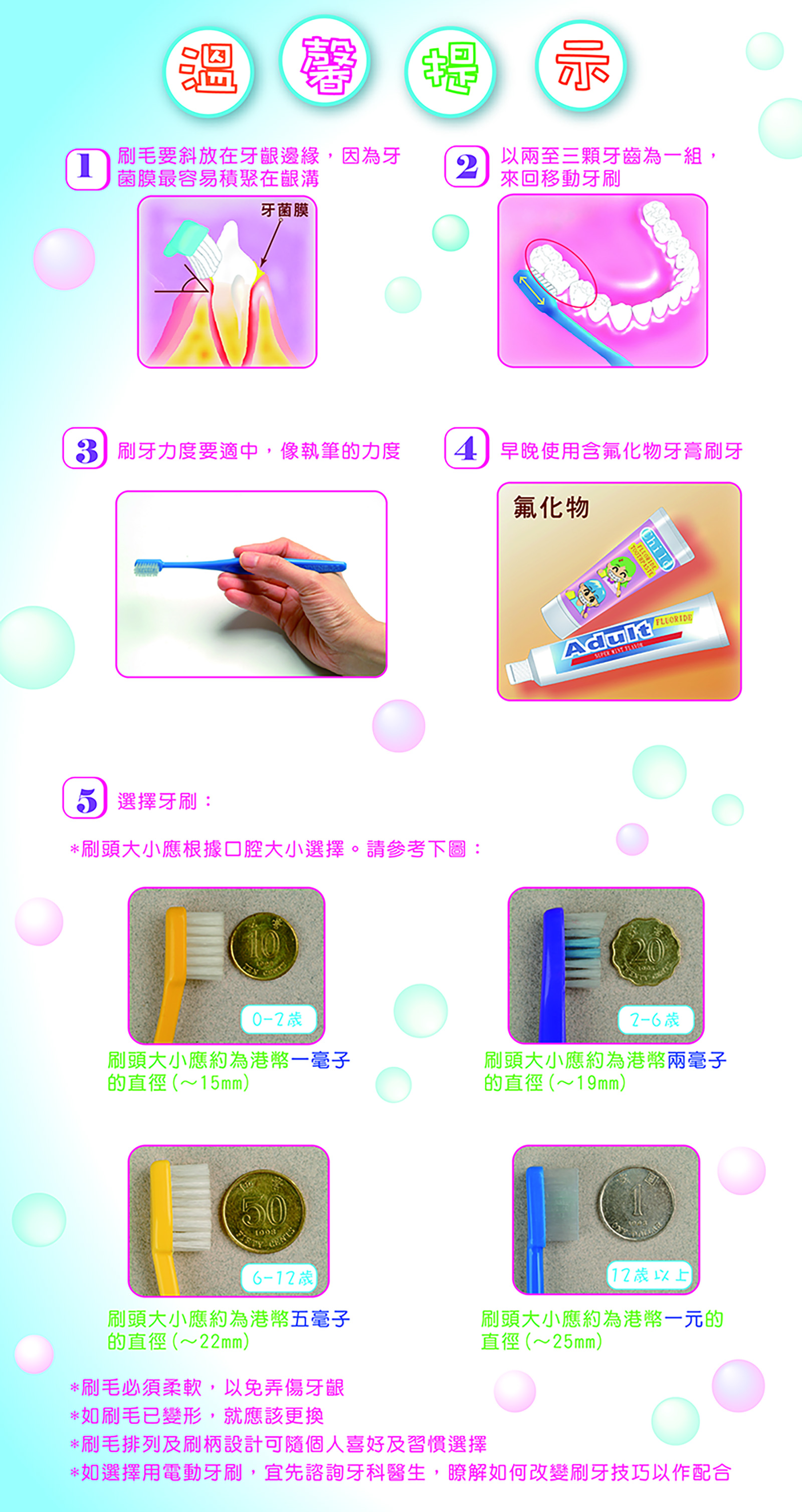 ◎ 如選擇用電動牙刷,宜先諮詢牙科醫生,瞭解如何改變刷牙技巧以作配合