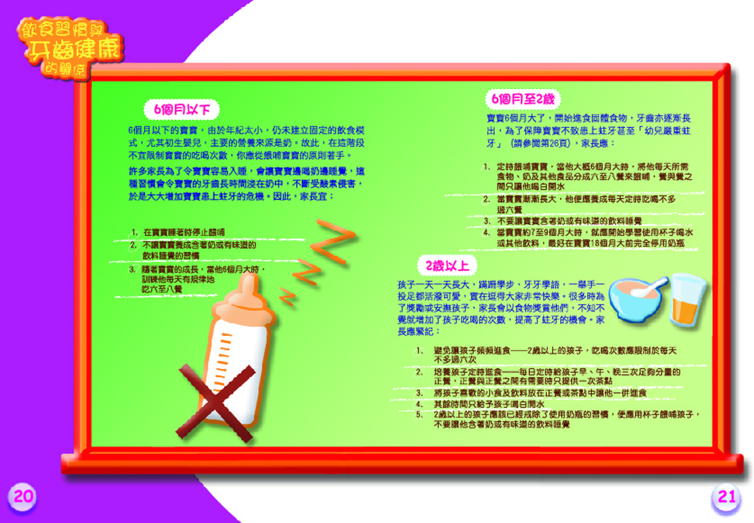 孩子一天一天長大,蹣跚學步,牙牙學語,一舉手一投足都活潑可愛,實在逗得大家非常快樂。很多時為了獎勵或安撫孩子,家長會以食物獎賞他們,不知不覺就增加了孩子吃喝的次數,提高了蛀牙的機會。家長應緊記:
