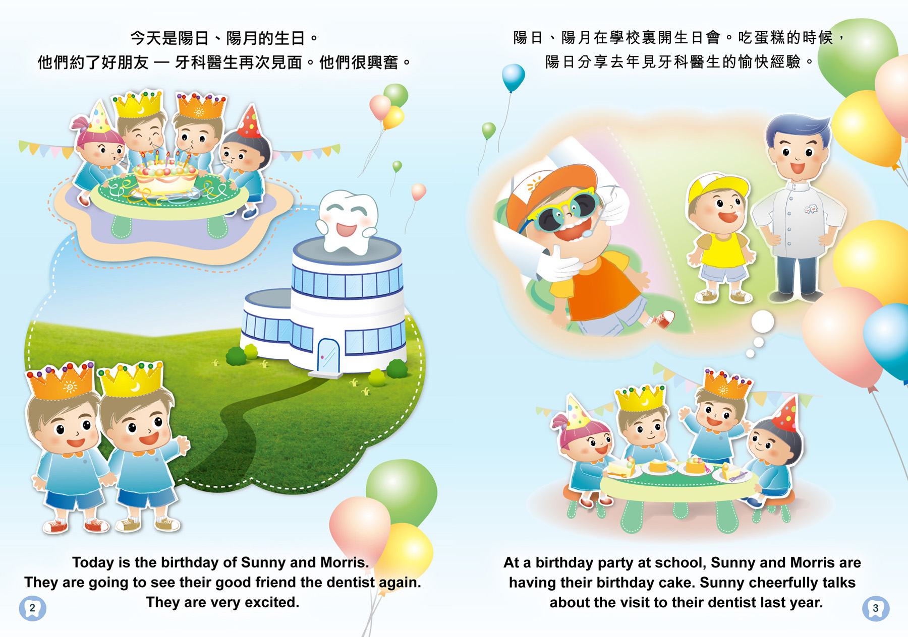 At a birthday party at school, Sunny and morris are having their birthday cake. Sunny cheerfully talks about the visit to their dentist last year.um and Dad brought her to Ocean World. It was Tony's birthday. Mum and Dad went cycling with him. They had a good time.