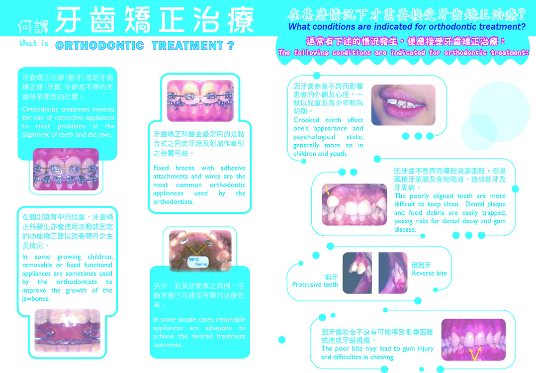 牙齒矯正治療(箍牙)借助牙齒矯正器(牙箍)令參差不齊的牙齒重移至理想的位置。