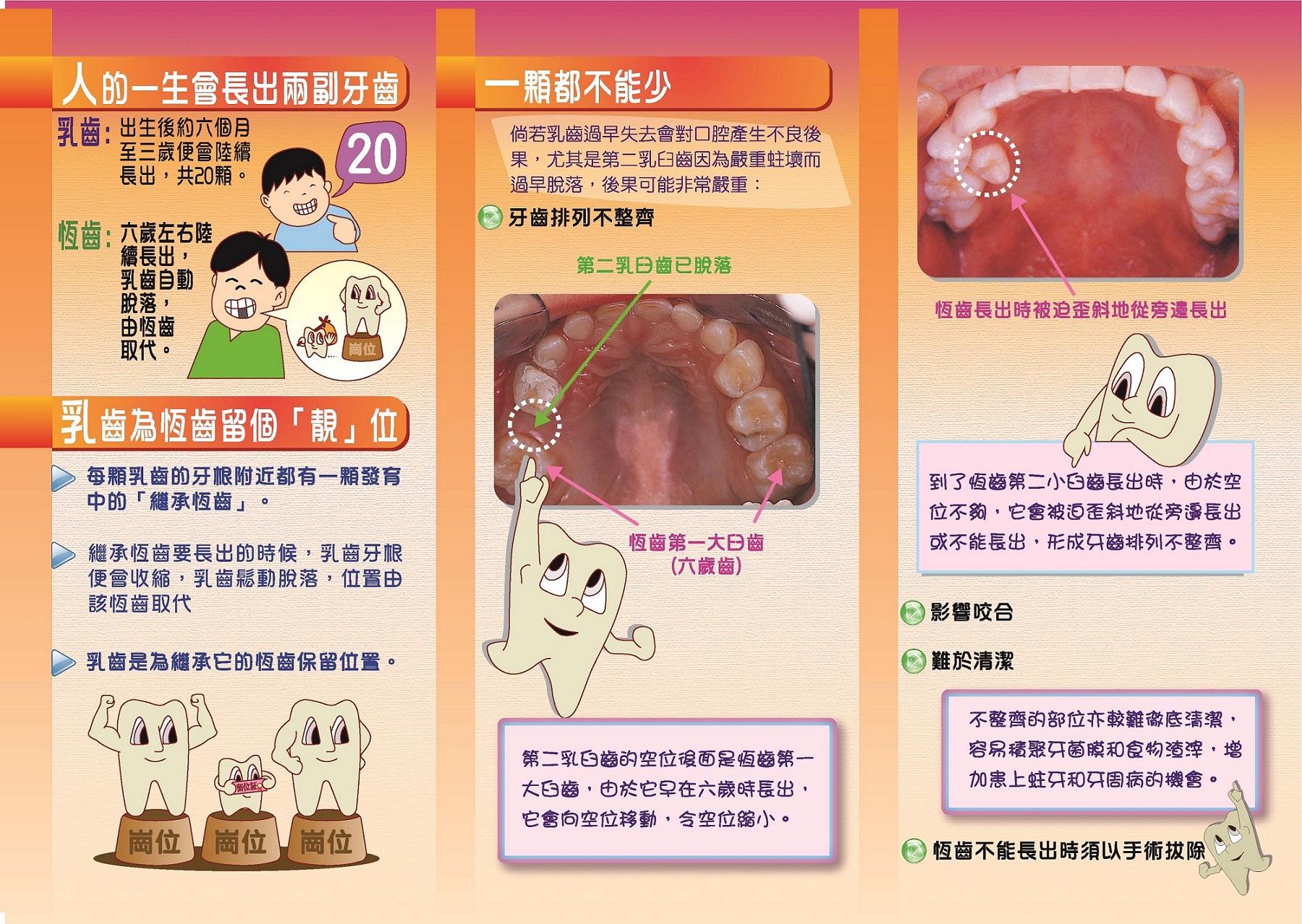 乳齒:出生後約六個月至三歲便會陸續長出,共20顆。