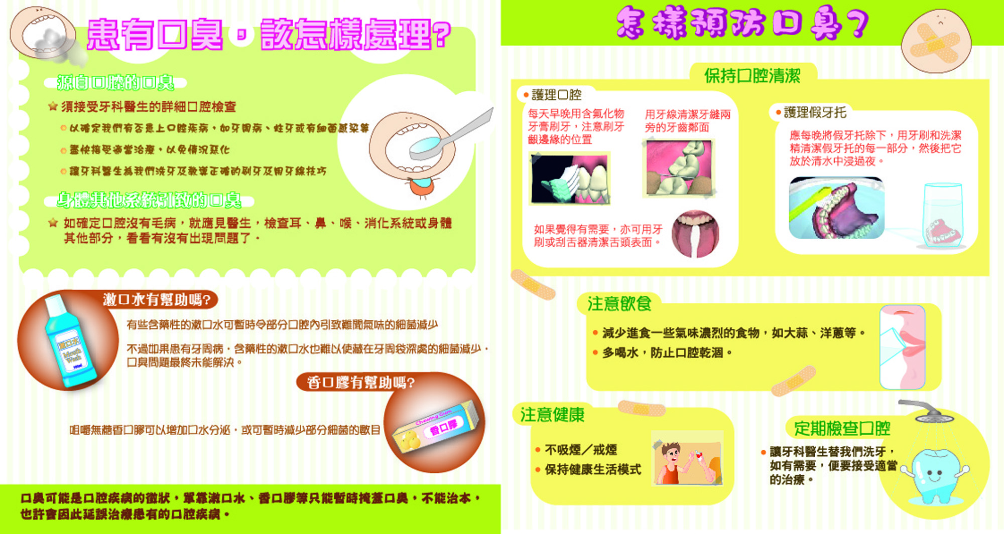 口臭可能是口腔疾病的徵狀,單靠潄口水、香口膠等只能暫時掩蓋口臭,不能治本,也許會因此延誤治療患有的口腔疾病。