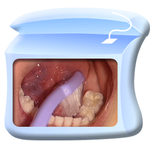 家长可尝试把手指从宝宝嘴角伸进他的口腔,接着沿他的面颊内侧伸到口腔最后的位置,然后把手指轻轻放在宝宝的上下颌牙列末端的位置,就能使宝宝张开口,这样就可以抹到宝宝口腔后部的牙肉了。