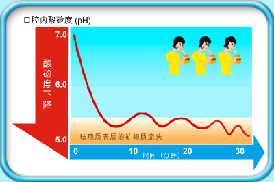 每次吃喝时,牙菌膜都会利用食物中的糖分进行新陈代谢,产生酸素,酸素会引致牙齿表面的矿物质流失。不过只要有足够时间让唾液中和酸素,以及补充牙齿表面流失了的矿物质,蛀牙机会便会减低。